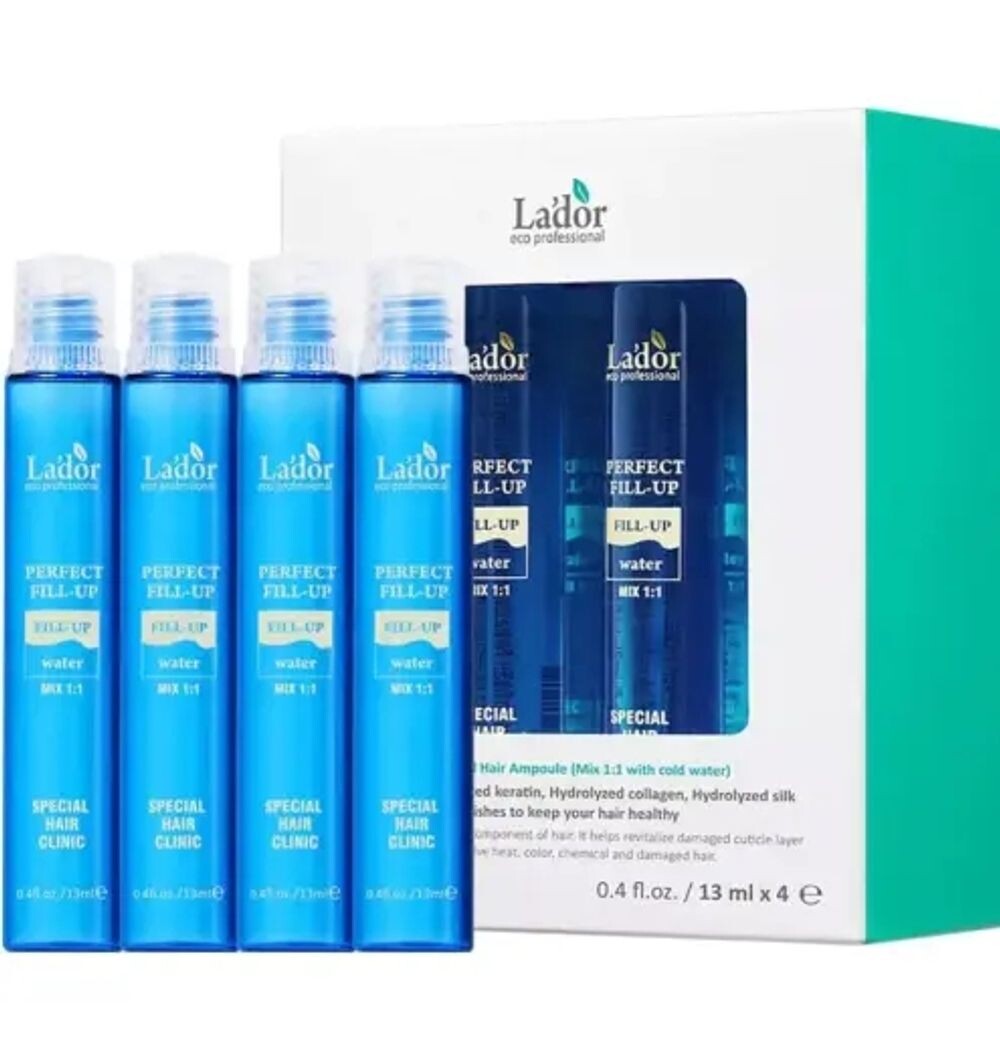 Филлер для восстановления структуры волос Lador Perfect Hair Fill-Up заполняет повреждённые участки структуры, разглаживает кутикулу, возвращает шелковистость и блеск, увеличивает объём и густоту.