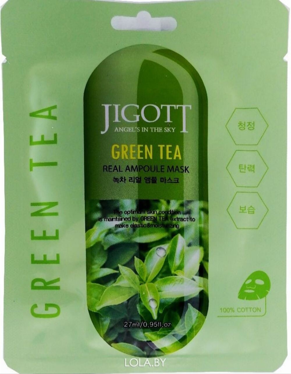 Тканевая маска для лица JIGOTT ЗЕЛЕНЫЙ ЧАЙ GREEN TEA Real Ampoule Mask